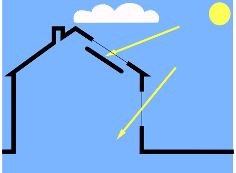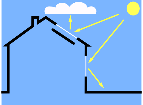 But with the Sun Valve, this heating is avoided, because the light is reflected back to the sun, where it came from. So the house and its surroundings get colder, because they are heated less.
