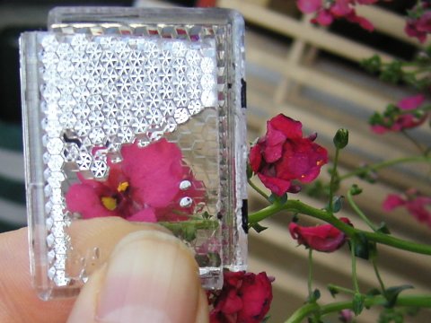 I achieved the best transparency by using mineral oil as the fluid, since it has an index of refraction close to the plastic. The pictures here are of this kind of Sun Valve. The smaller the gap between the panels, the more transparent it gets. By using materials with more equal index of refraction, and more precise gaps between the panels, one could achieve perfect transparency.